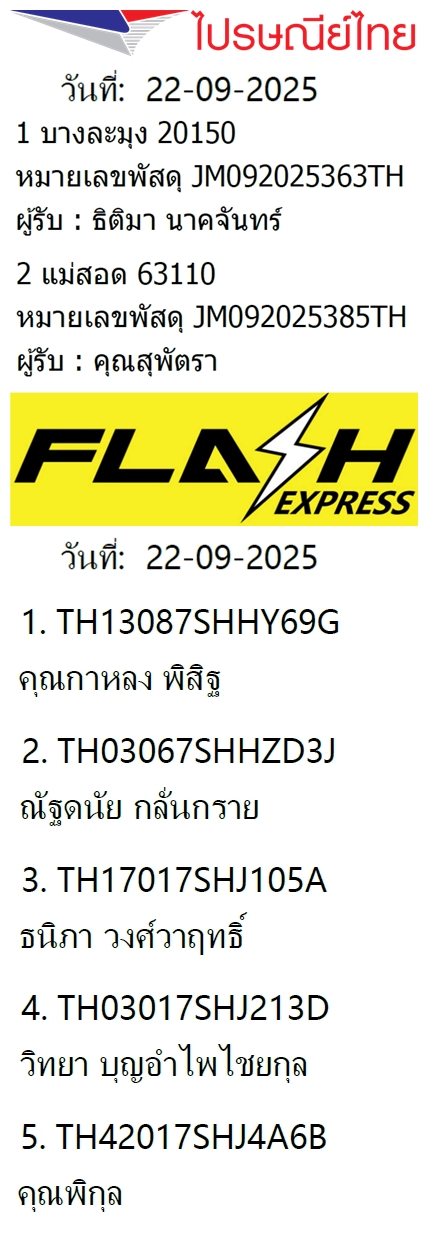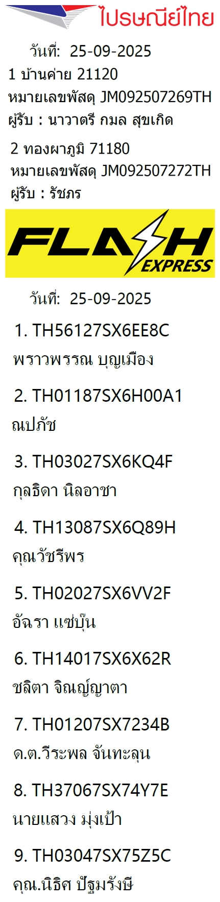 เลขพัสดุฯ วันพฤหัส 25 ก.ย. 2568