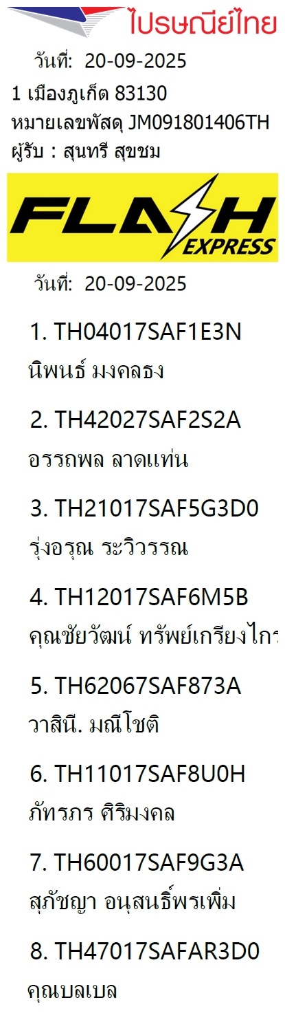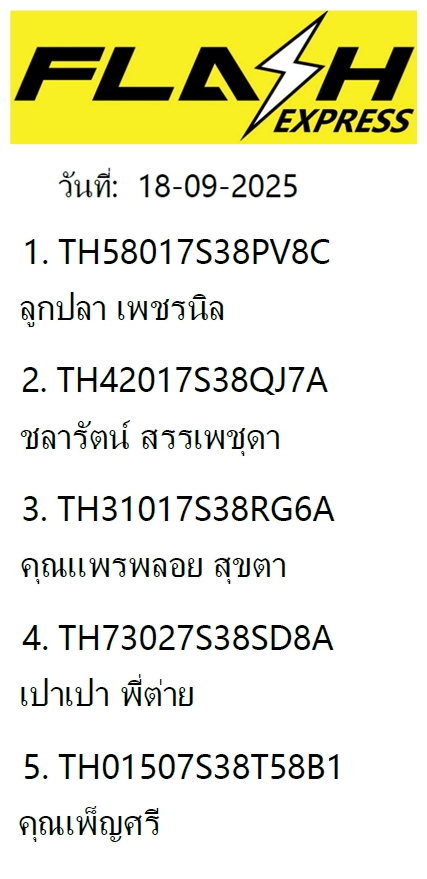 เลขพัสดุฯ วันพฤหัส 18 ก.ย. 2568