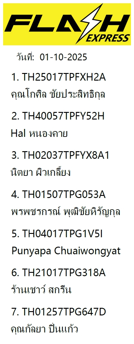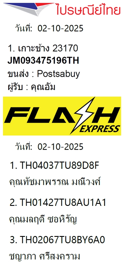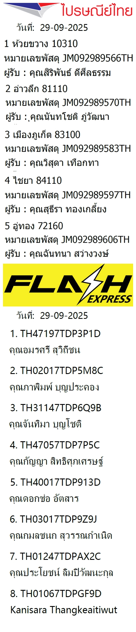 เลขพัสดุฯ วันพฤหัส 2 ต.ค. 2568