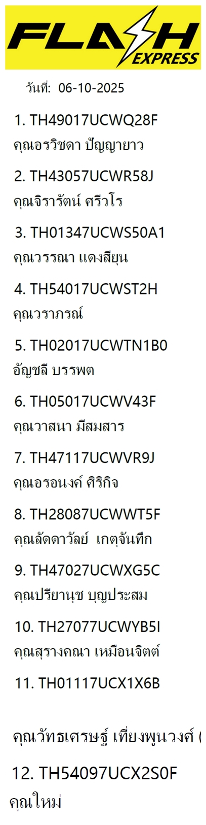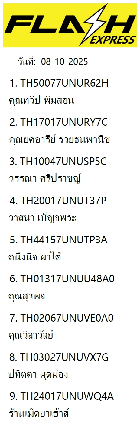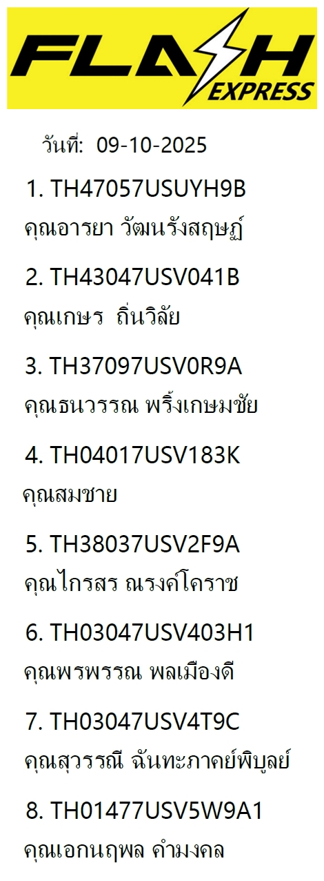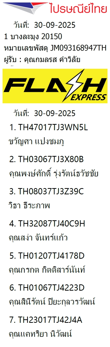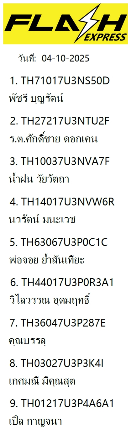 เลขพัสดุฯ วันพฤหัส 9 ต.ค. 2568