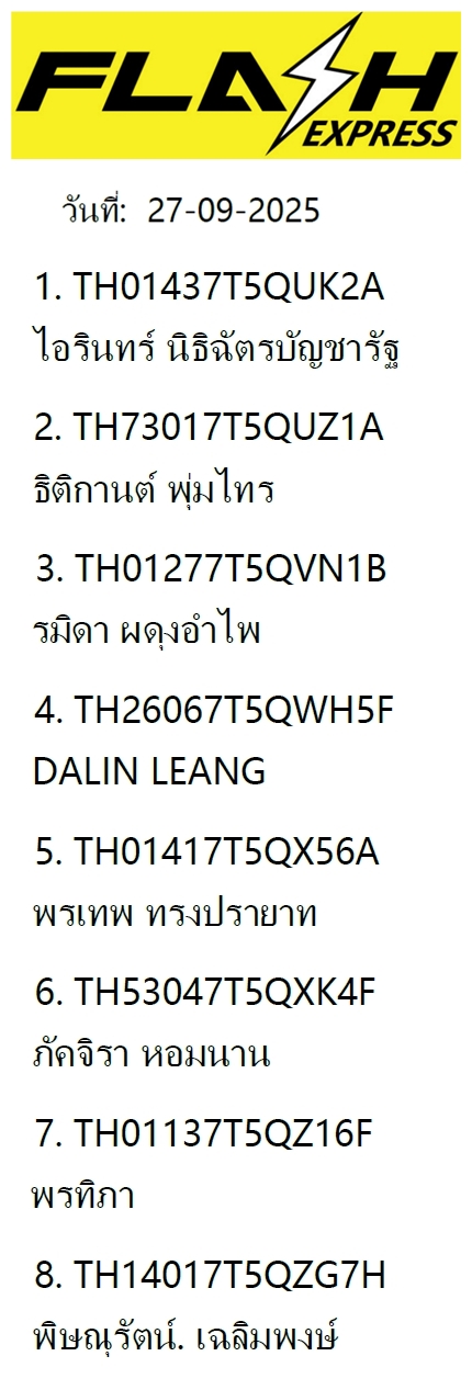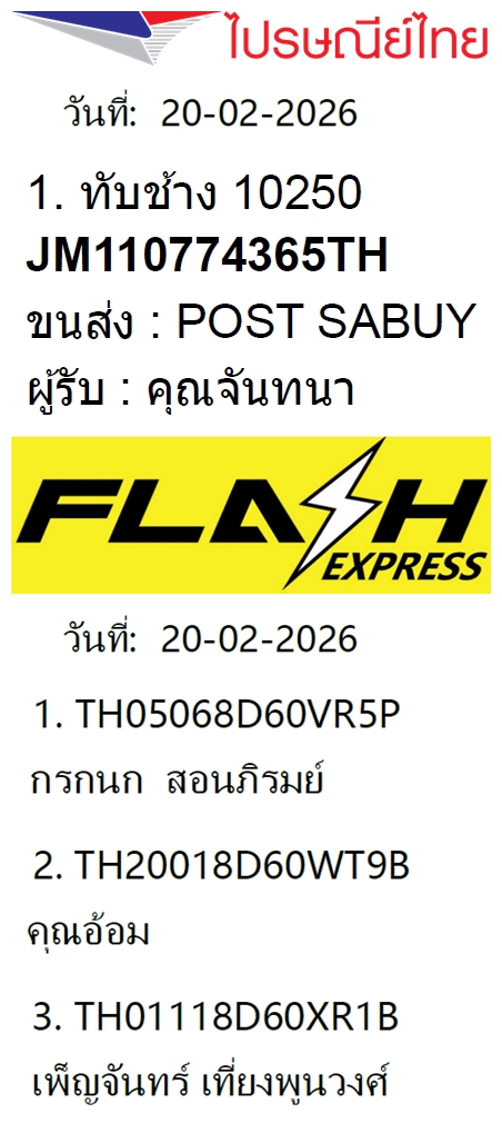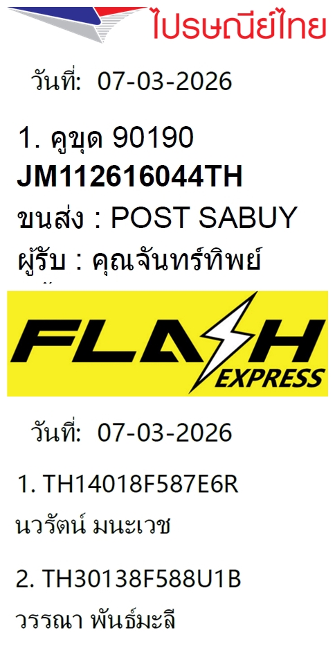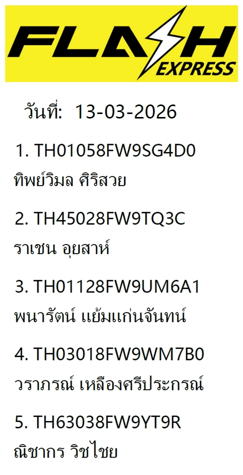 ตรวจสอบเลขพัสดุ บริษัท แฟลช เอ็กซ์เพรส ได้ที่ https://www.flashexpress.co.th/tracking/?se=
