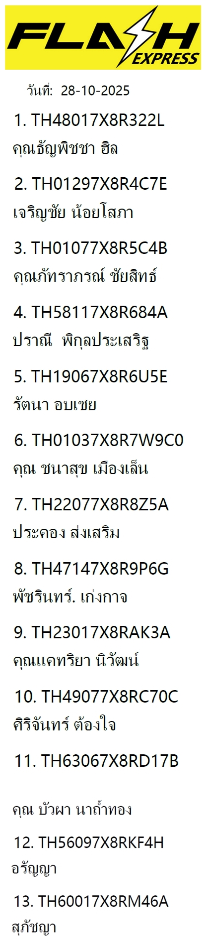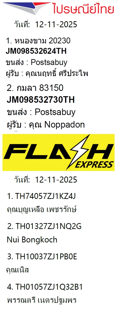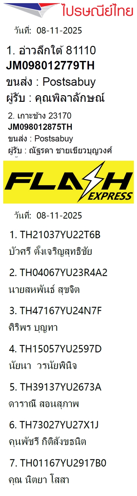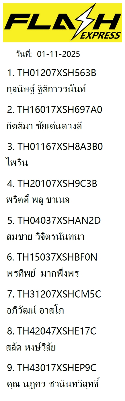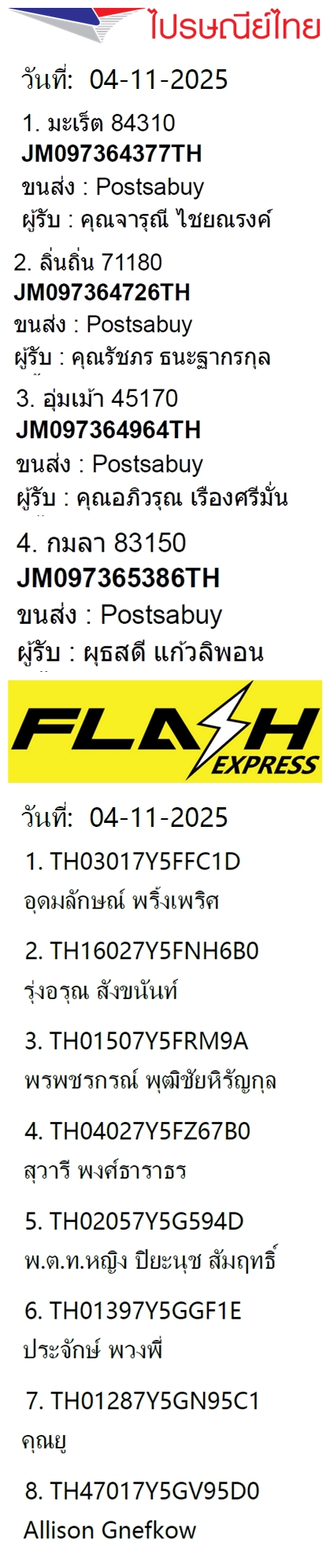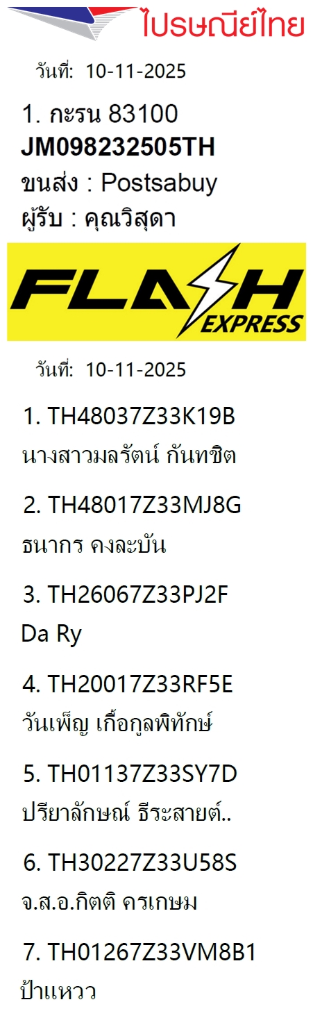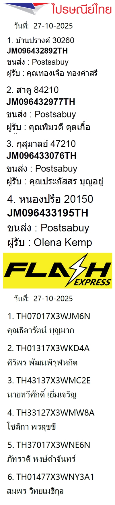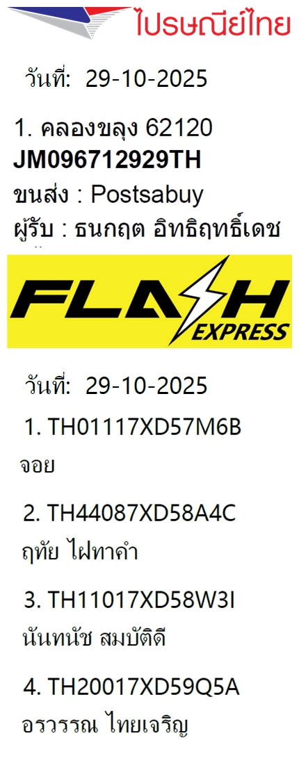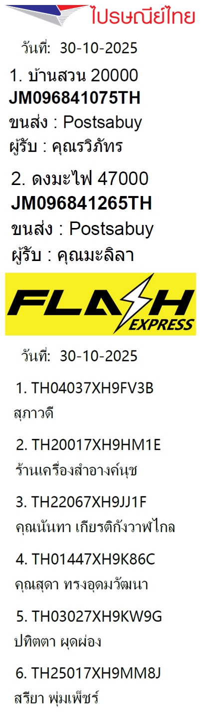 เลขพัสดุฯ วันพฤหัส 30 ต.ค. 2568
