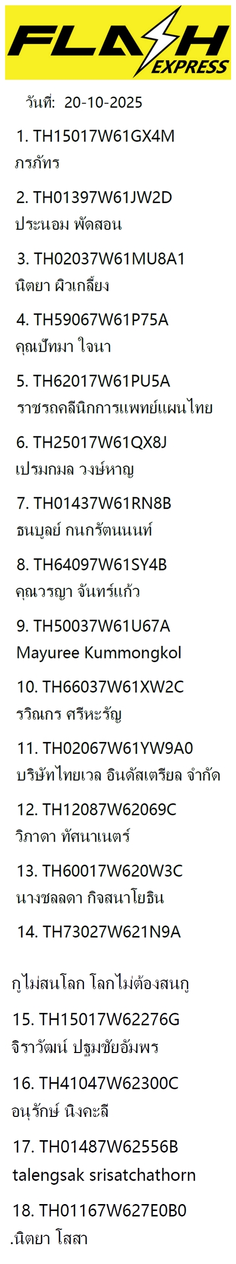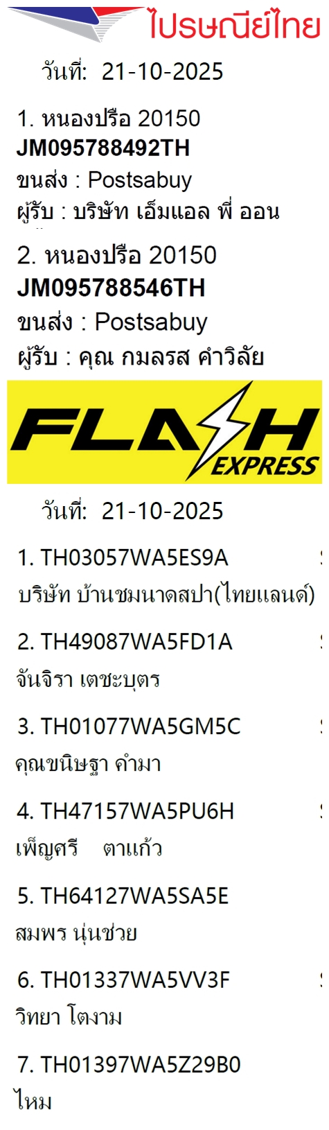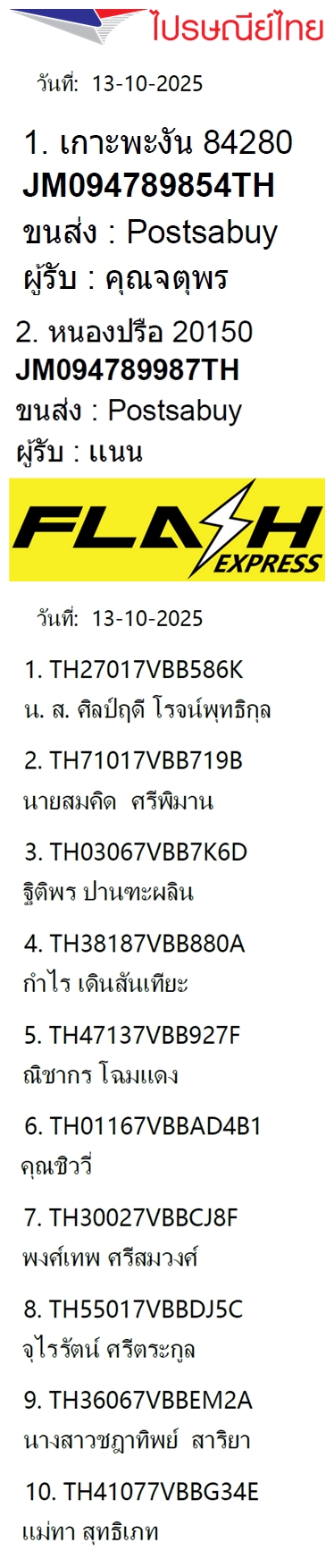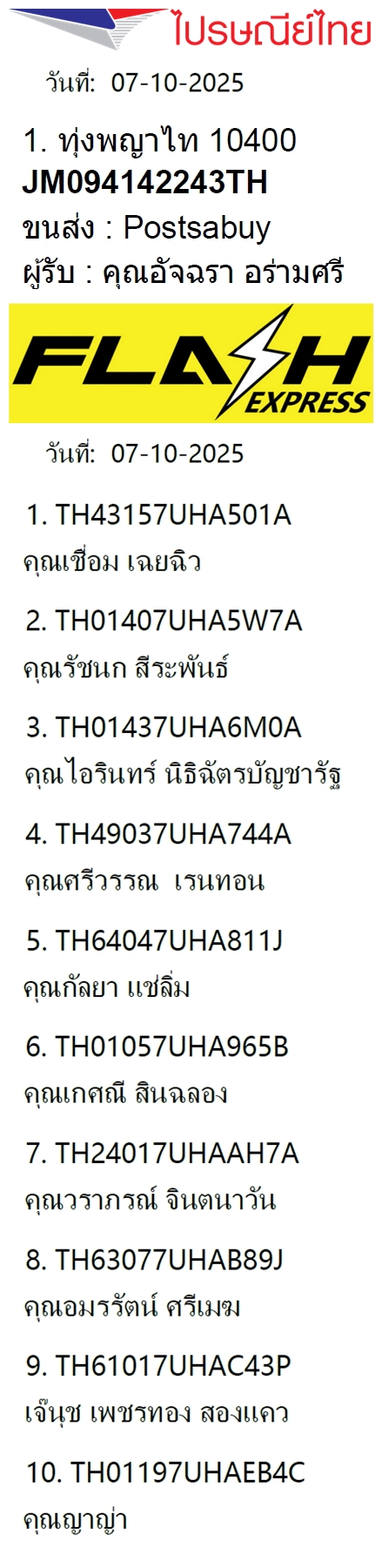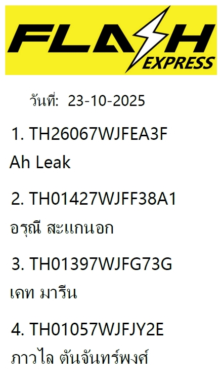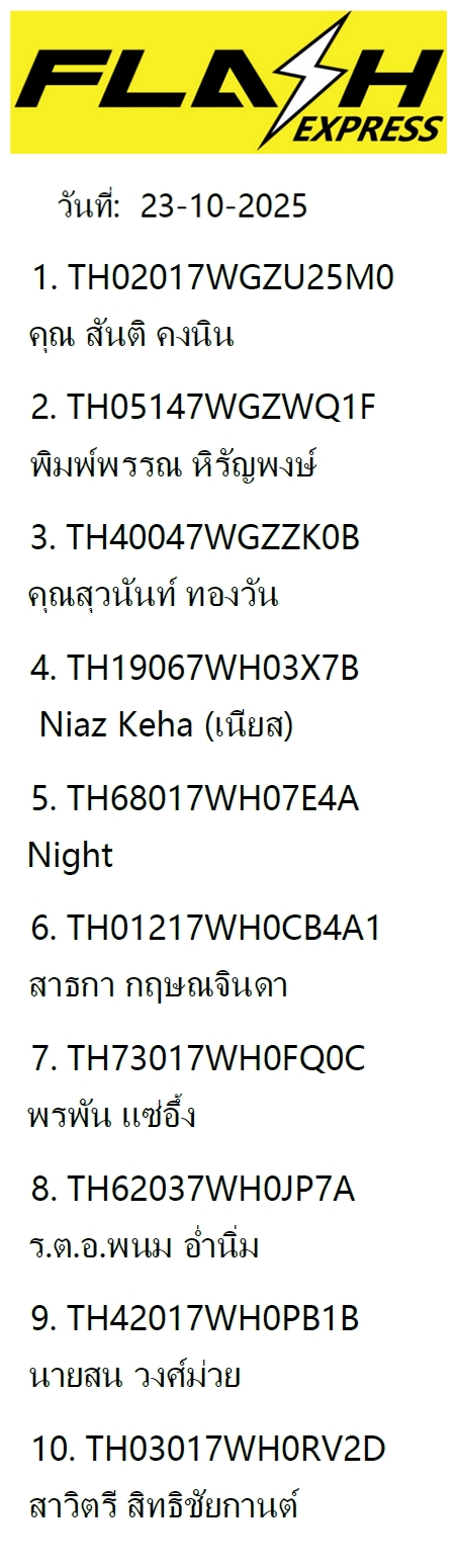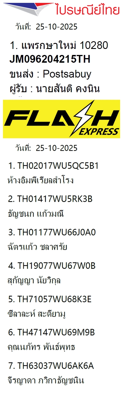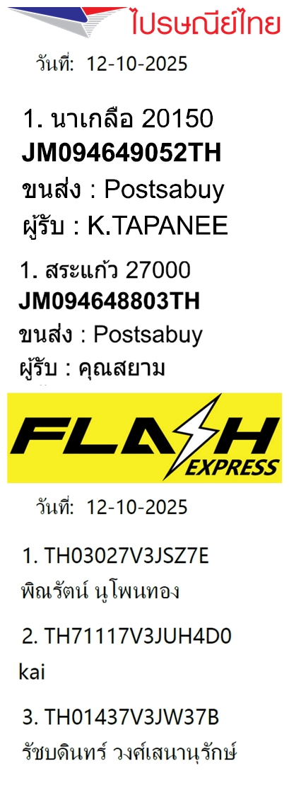 เลขพัสดุฯ วันพฤหัส 23 ต.ค. 2568