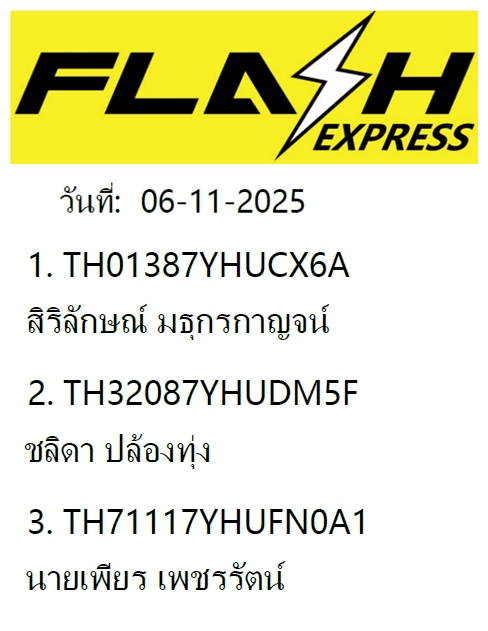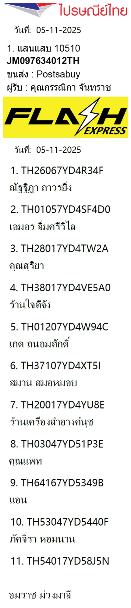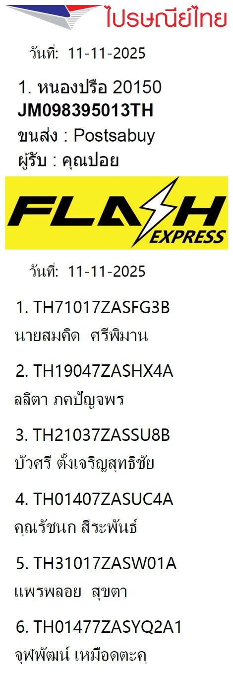 เลขพัสดุฯ วันพฤหัส 6 พ.ย. 2568