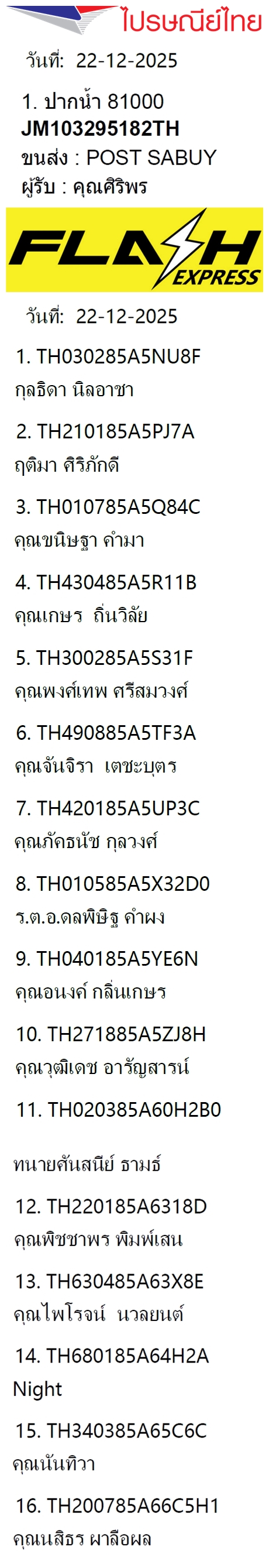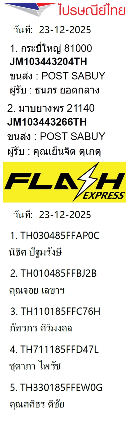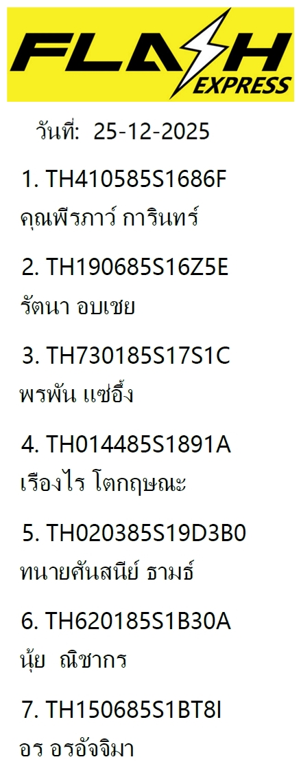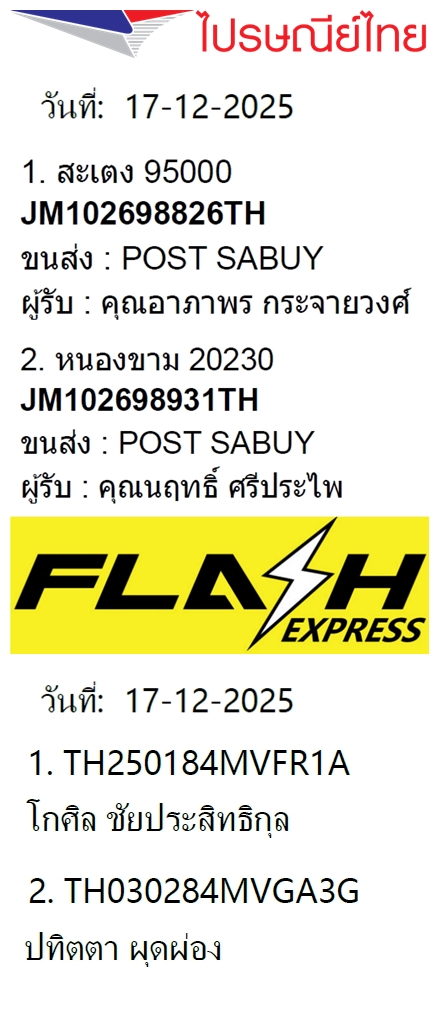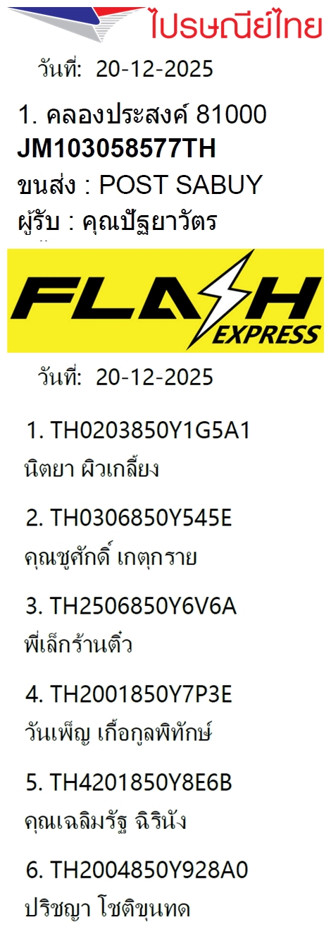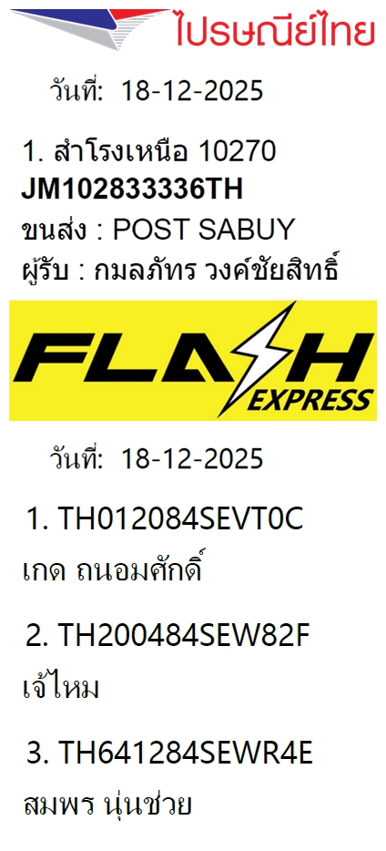เลขพัสดุฯ วันพฤหัส 18 ธ.ค. 2568