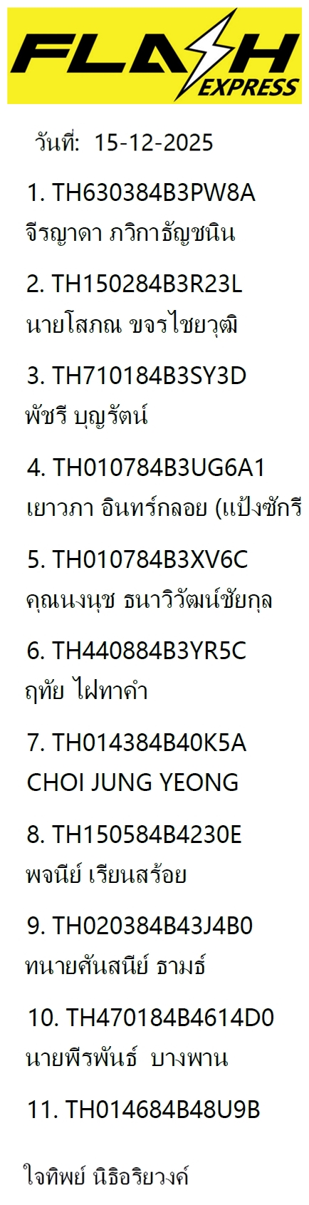 เลขพัสดุฯ วันพฤหัส 11 ธ.ค. 2568