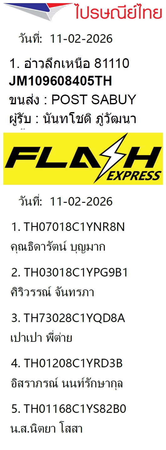 เลขพัสดุฯ วันพุธ 11 ก.พ. 2569