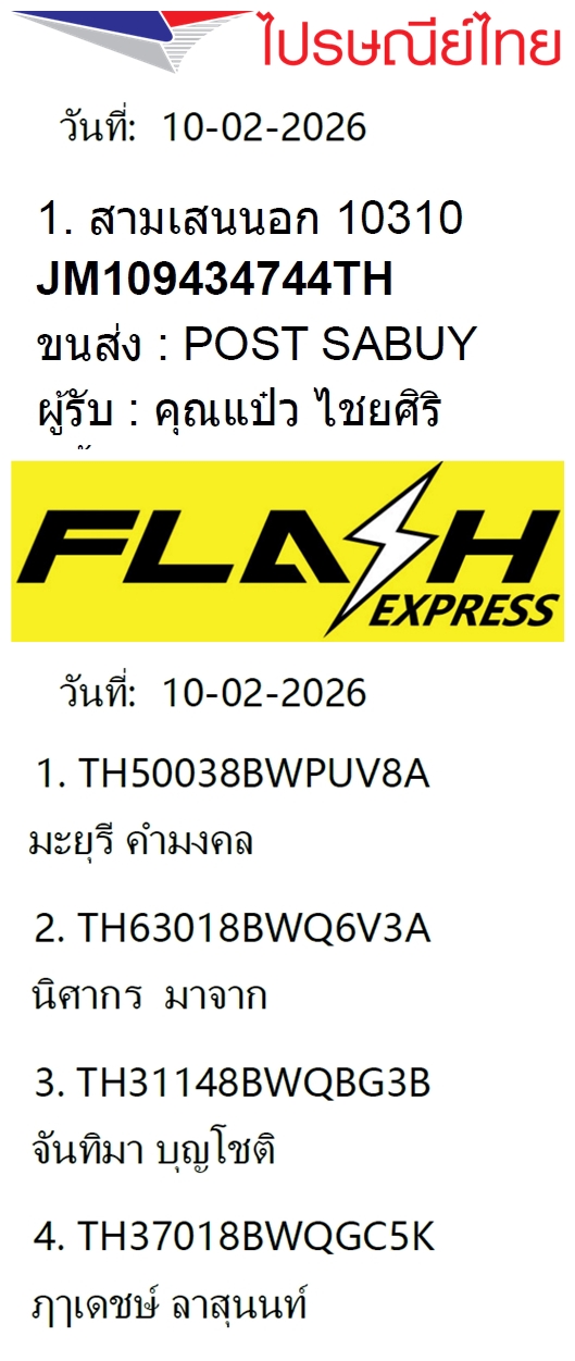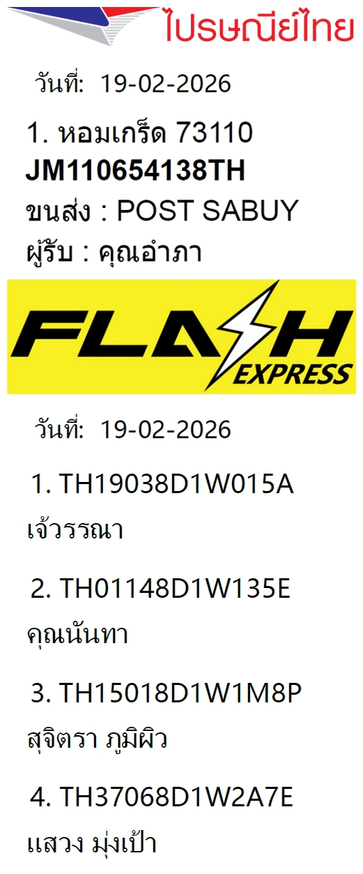 เลขพัสดุฯ วันพฤหัส 19 ก.พ. 2569
