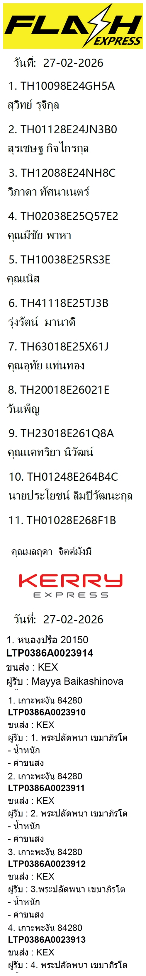เลขพัสดุฯ วันศุกร์ 27 ก.พ. 2569