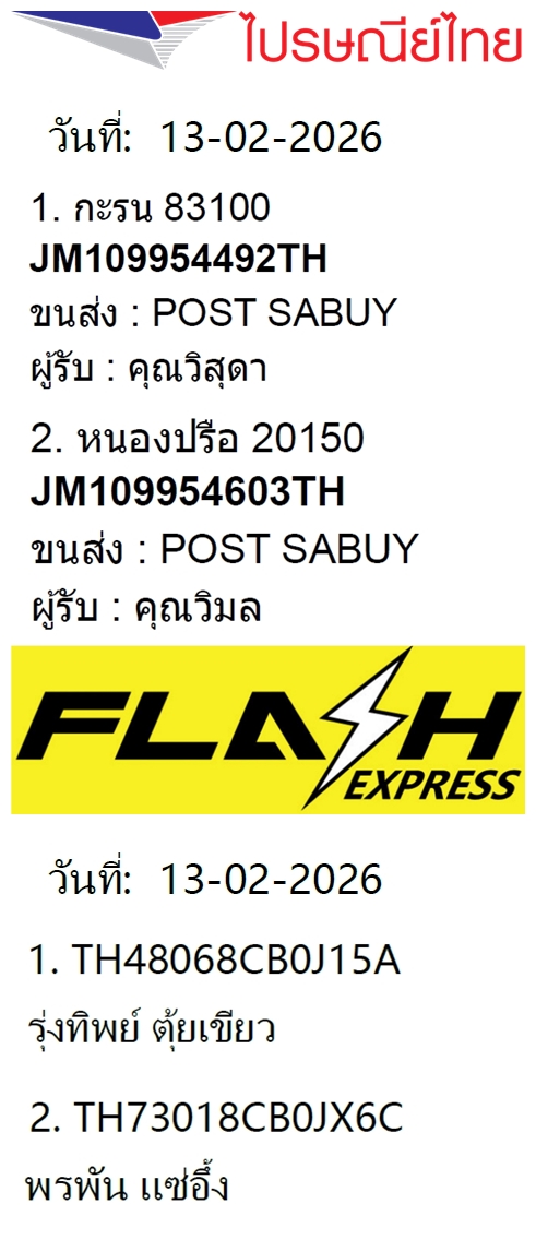 เลขพัสดุฯ วันศุกร์ 13 ก.พ. 2569