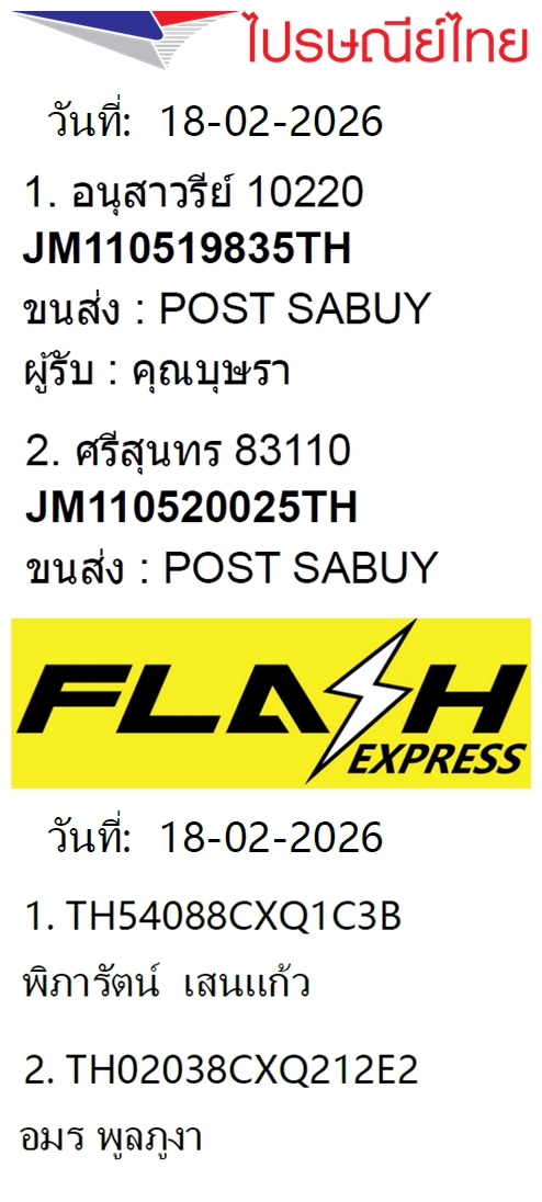 เลขพัสดุฯ วันพุธ 18 ก.พ. 2569