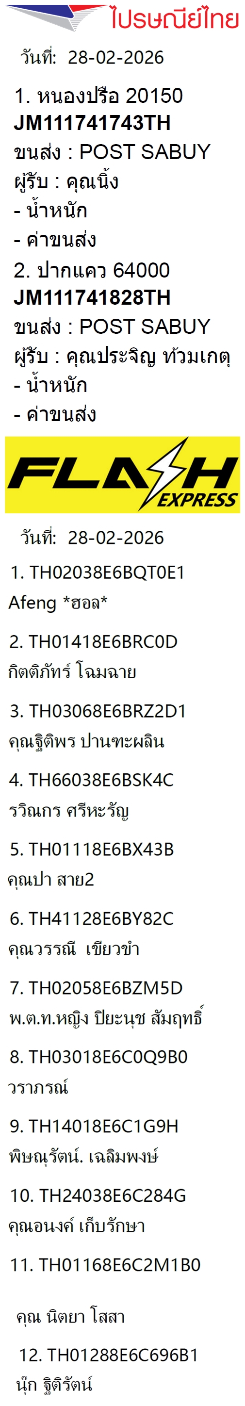 เลขพัสดุฯ วันศุกร์ 28 ก.พ. 2569