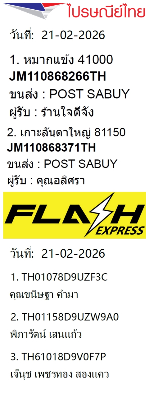 เลขพัสดุฯ วันเสาร์ 21 ก.พ. 2569