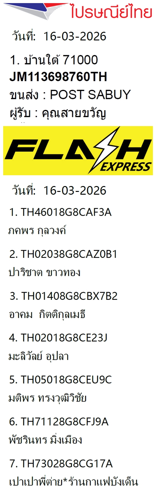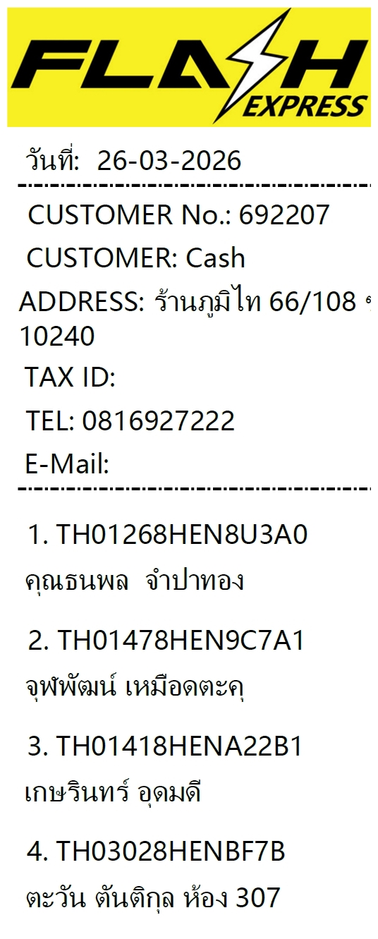 พัสดุธรรมดาทางร้านส่งผ่านบริษัทขนส่งเอกชน แฟลช เอ็กซ์เพรส