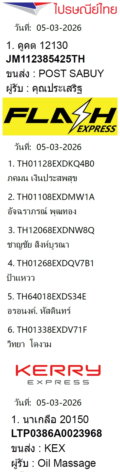 เลขพัสดุฯ วันพฤหัส 5 มี.ค. 2569