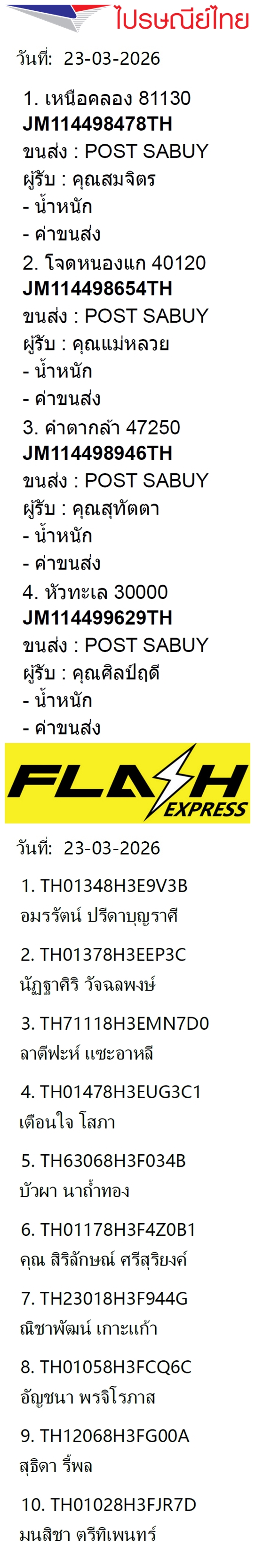 เลขพัสดุฯ วันจันทร์ 23 มี.ค. 2569