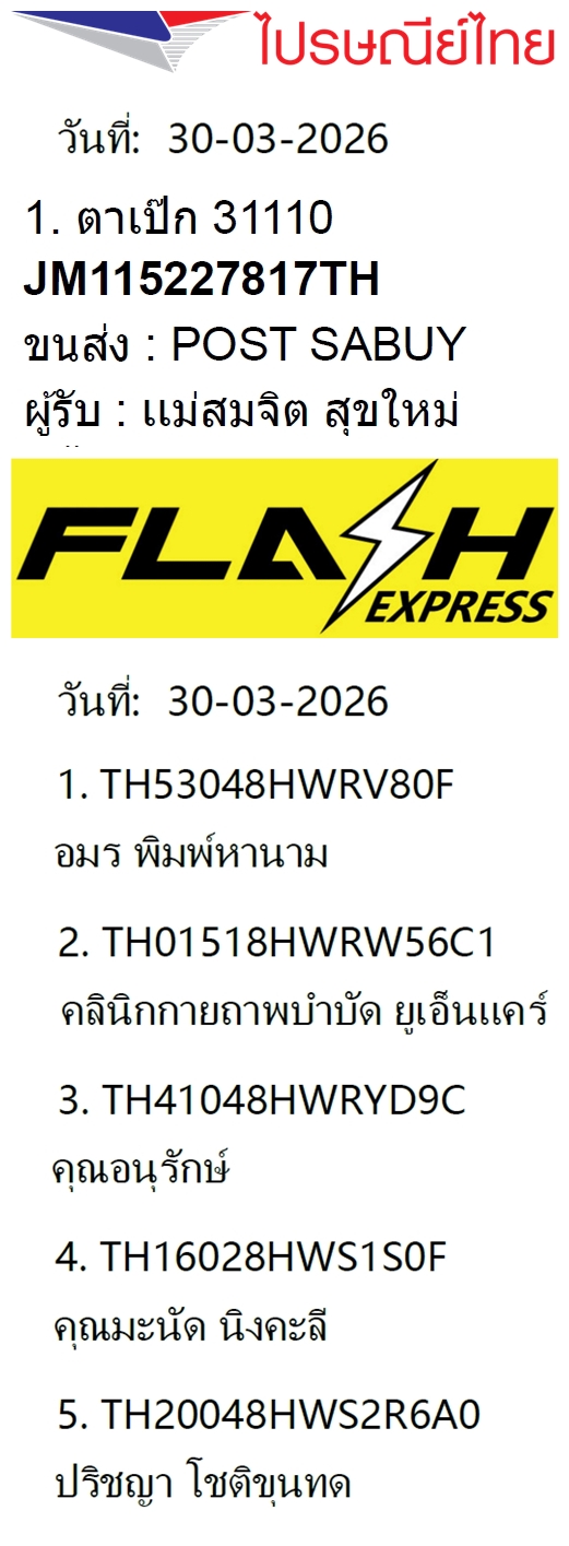 เลขพัสดุฯ วันพฤหัส 26 มี.ค. 2569