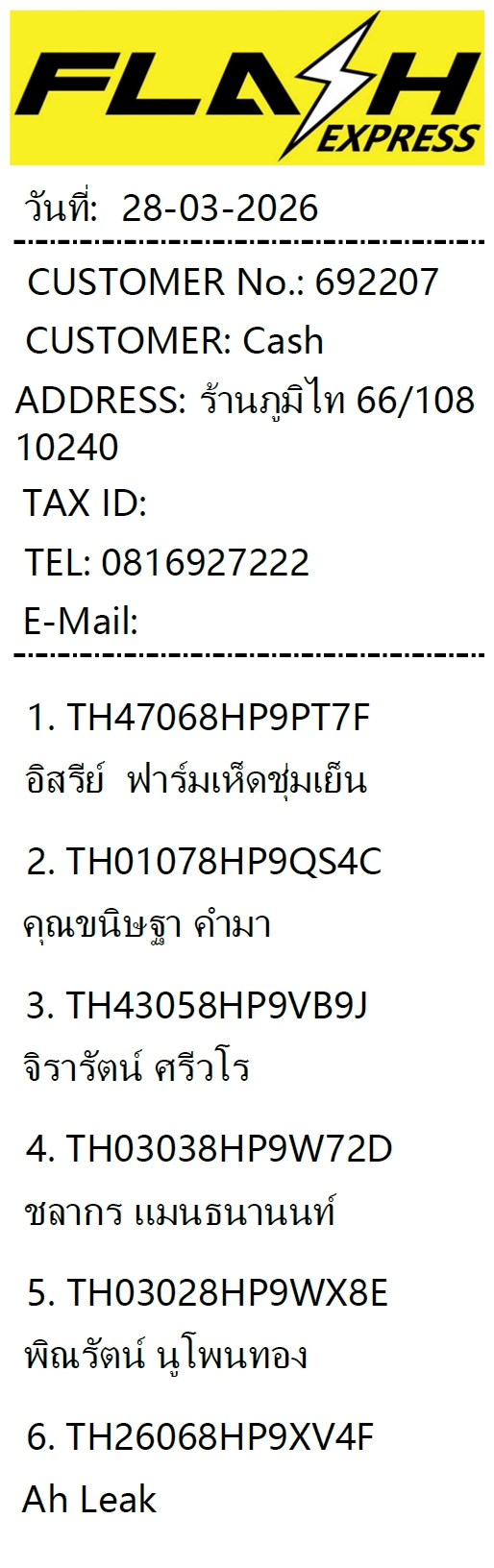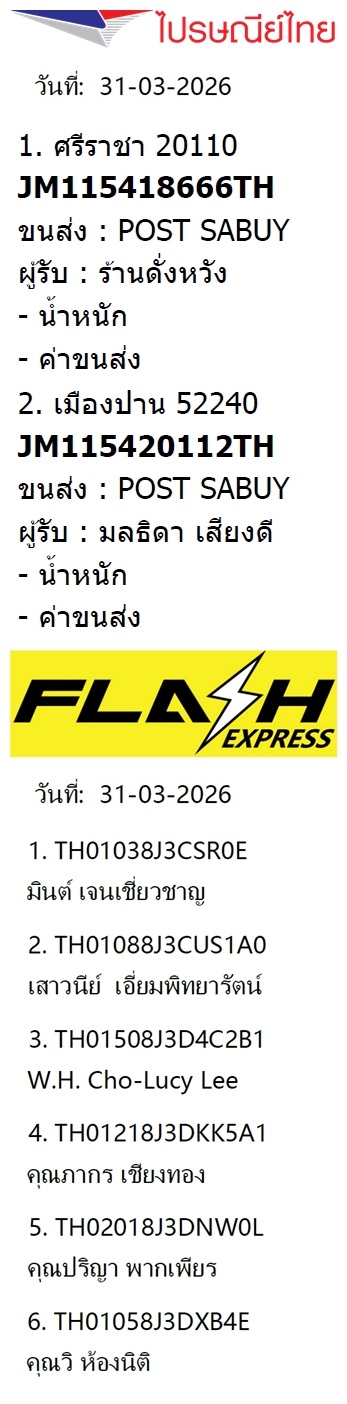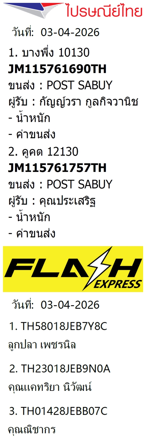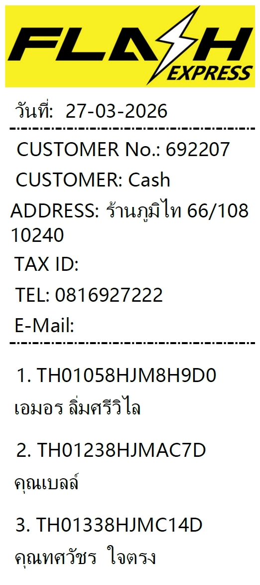 ตรวจสอบเลขพัสดุ บริษัท แฟลช เอ็กซ์เพรส ได้ที่ https://www.flashexpress.co.th/tracking/?se=
