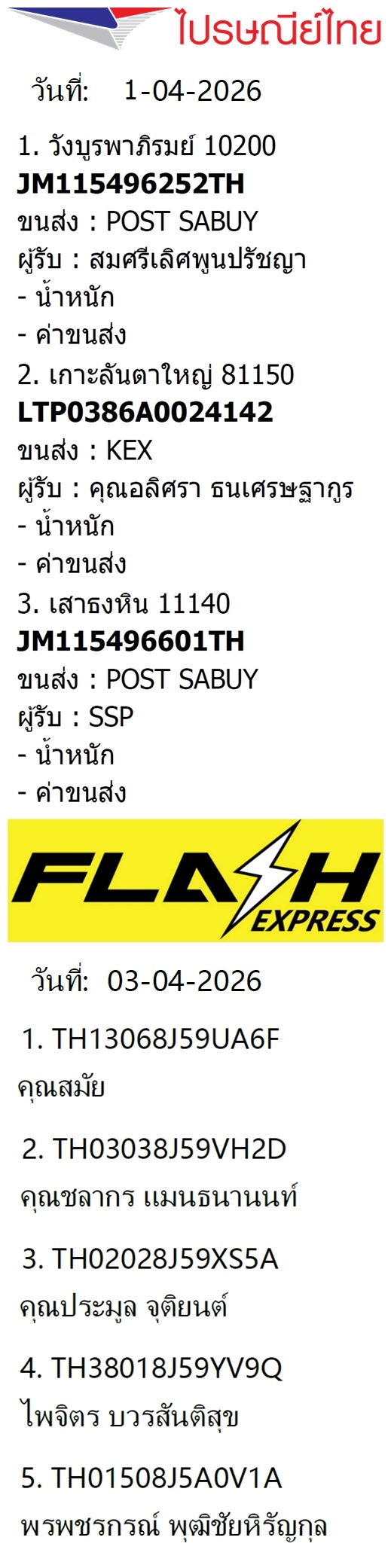 เลขพัสดุฯ วันพฤหัส 2 เม.ย. 2569
