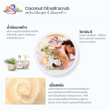 สครับเกลือน้ำมันมะพร้าว เพื่อผิวกระจ่างใส เนียนนุ่มของผิวช่วยทำหน้าที่ในการขจัดเซลล์ผิวที่เสื่อมสภาพ และตายแล้ว