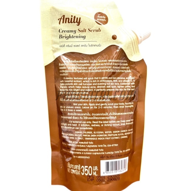 Anity creamy soft scrub Brightening เอนิตี้ ครีมมี่ ซอลต์ สครับ ไบร์ทเทนนิ่ง(ถุงน้ำตาล)